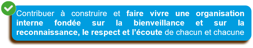 - Porter de façon inconditionnelle attention et assistance aux collègues en situation de précarité, de vulnérabilité ou de difficulté professionnelle