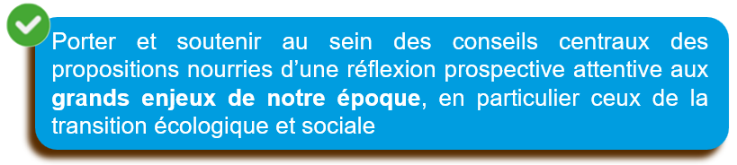 Nous souhaitons jouer un rôle actif dans les conseils centraux afin qu’ils ne soient pas de simples chambres d’enregistrement mais des lieux de débat où l’on contribue à orienter les choix de l’université. Pour que nos élus puissent jouer ce rôle, nous travaillerons de façon ouverte et participative afin d’élaborer, avec tous les personnels qui le souhaiteront, des propositions concrètes sur les grands enjeux qui concernent notre communauté et nos missions.